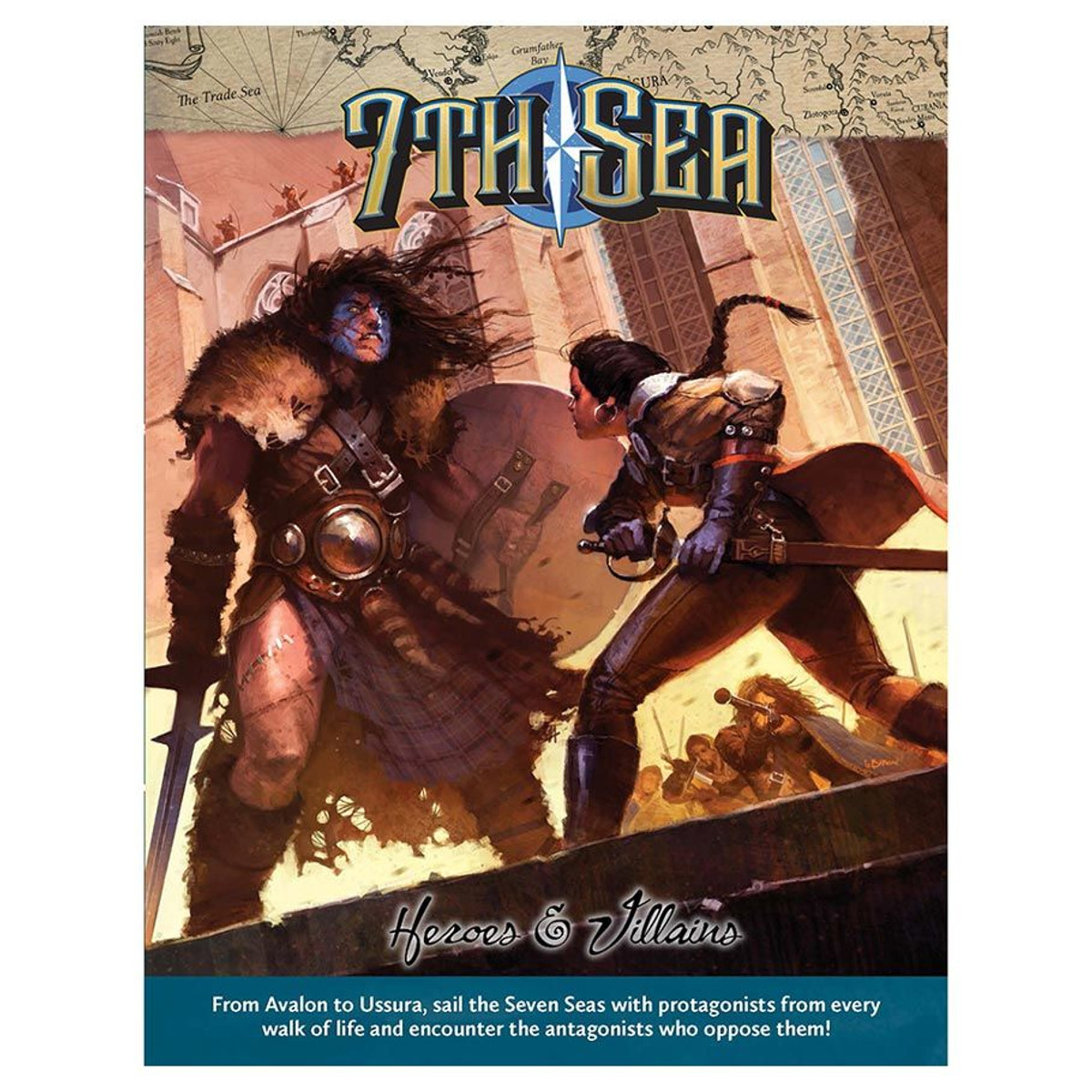 The 7th Sea Heroes & Villains book gives you 40 Heroes and 40 Villains to use in your game. It discusses heroism, villainy and possible redemption for lost souls who have fallen into darkness and includes new Advantages, Backgrounds and other systems for use with 7th Sea: Second Edition.