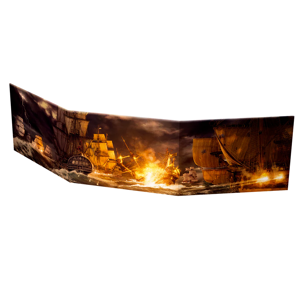 The Price of Arrogance GM Screen is a new game screen that illustrates one of the scenes from the campaign. It offers a fresh ambiance, distinct from previous screens released for the game. On the interior side, it contains all the essential rules elements needed to run The Price of Arrogance, but it can be used for any 7th Sea game.