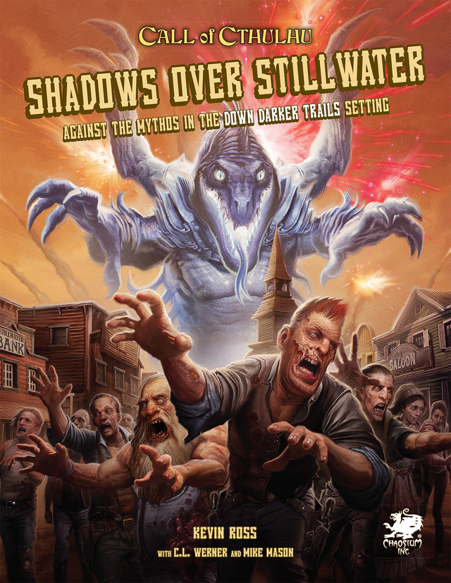 Featured is a three-part campaign—The Shadow Over Stillwater—set in the mountains of the New Mexico Territory. A hunt for a fugitive murderer leads the investigators into a mystery involving odd townsfolk, strange lights in the sky, walking corpses, and the machinations of a once-powerful and ancient race seeking to reclaim their lost glory.