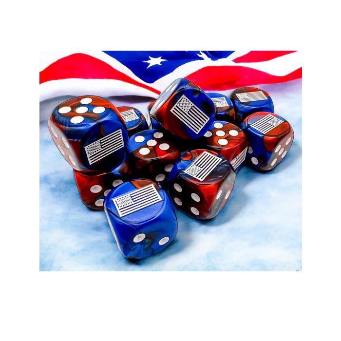 At the heart of each die is the iconic American flag logo, replacing the traditional 1-side, serving as a tribute to the bravery and sacrifices of those who served. The white pips against the vibrant blue-red background ensure clear visibility, enhancing your gaming experience.
