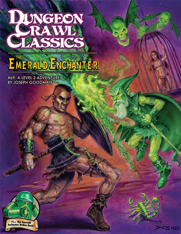 Villagers have gone missing! A mix of clues, superstitions, and omens point to the brooding citadel of the emerald sorcerer. This silent monolith has sat undisturbed atop a windy ridge for centuries. Legends say that a green-skinned sorcerer dwells there, where he conducts strange experiments and builds enigmatic machinery. His green-skinned constructs patrol the grounds of his citadel, and he is seen only rarely when he ventures out on nefarious errands that end in horrid screams and strange lights coming from his citadel. Now it is time to penetrate his inner sanctum…