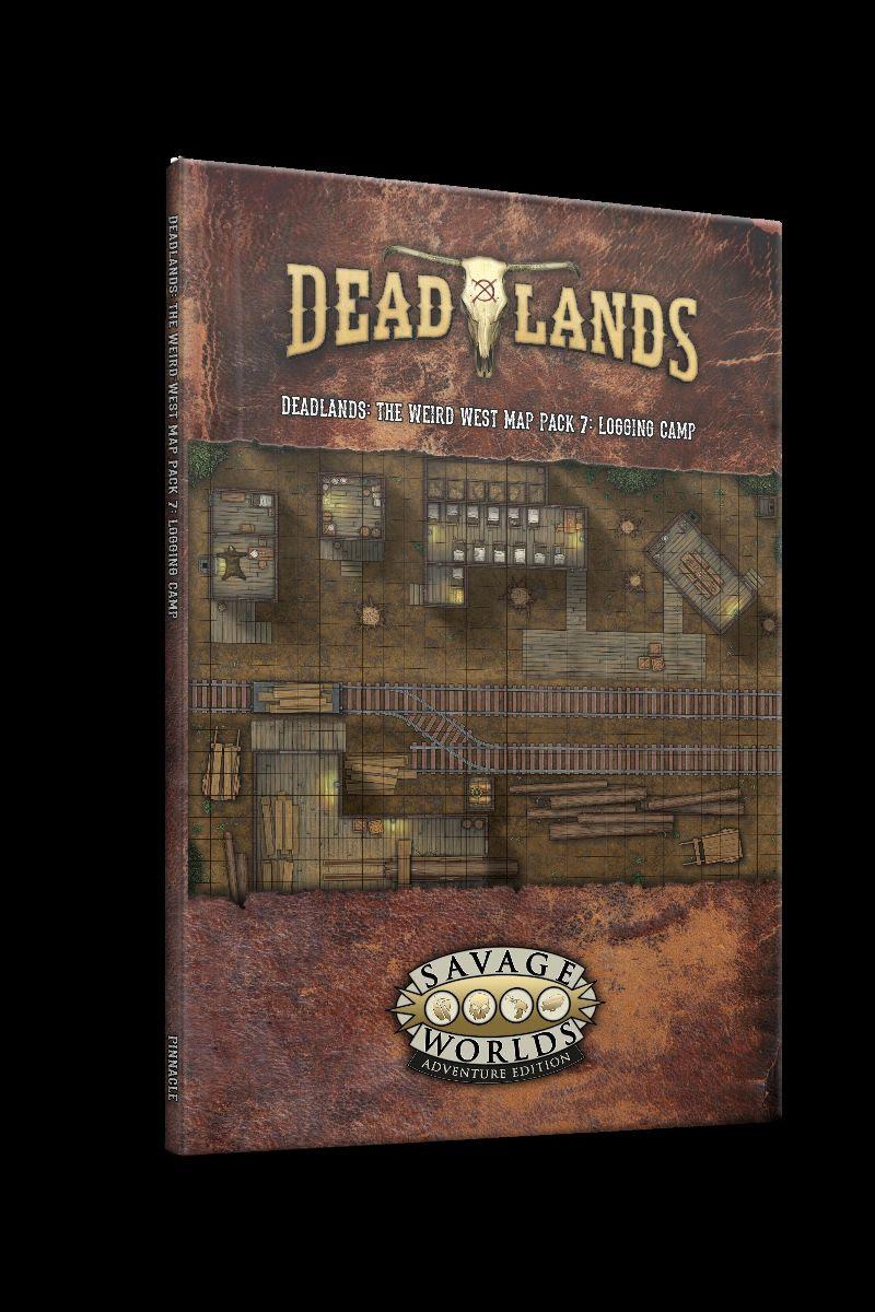 Map Pack 7: Logging Camp features rail spurs, a saw-mill, cabins, and plenty of logs as cover (or to roll on top of someone)! The reverse side features a remote trading post out in the snowy wilds. Deadlands Map Packs are large, 30" x 24" double-sided laminated maps for use with miniatures or our Deadlands pawns. They're marked with a light one inch grid, perfect for Savage Worlds. Print Version: 30" x 24", double-sided, laminated cardstock for use with dry and wet-erase pens.