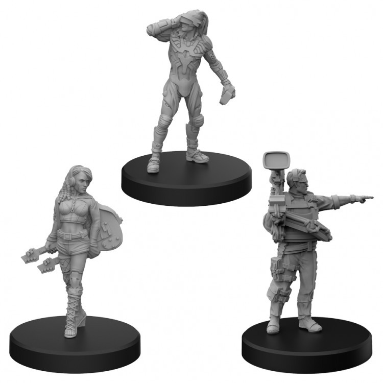 Bring your adventures to the tabletop with these detailed Cyberpunk RED models. Each model is made from durable plastic and includes a base. Use them to represent your player characters and other citizens living on the edge!