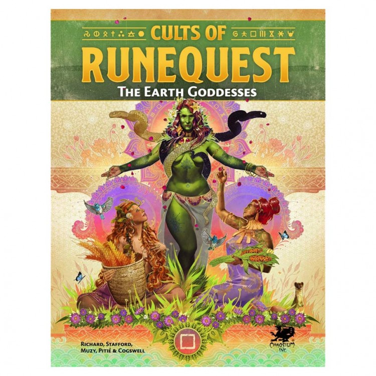 Cults of RuneQuest: The Earth Goddesses is the third book in the new Cults of RuneQuest sourcebook series for the RuneQuest TTRPG. This book is the player’s guide to the earth pantheon, opening up character creation and advancement to a whole new level.