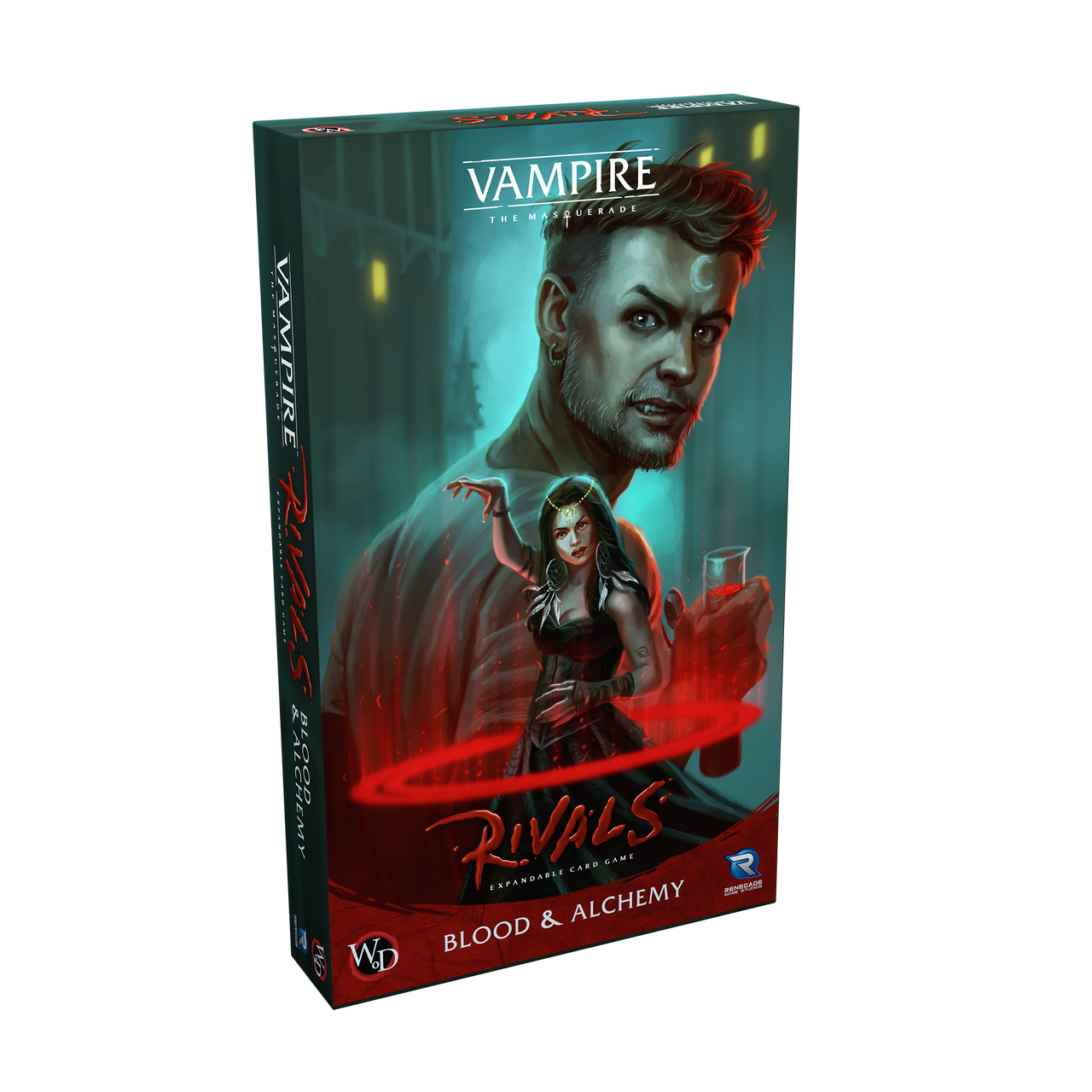 Blood & Alchemy is an expansion for Vampire: The Masquerade Rivals Expandable Card Game that adds two new clans: Tremere & Thin-bloods. The Tremere are masters of Blood Sorcery who draw incredible power from their Blood, while the Thin-bloods must mix a plethora of chemicals with their Blood to extract power from it. You may play these two clans head-to-head or simply integrate them with your Core Set to give you more options for mixing clans and creating new decks!